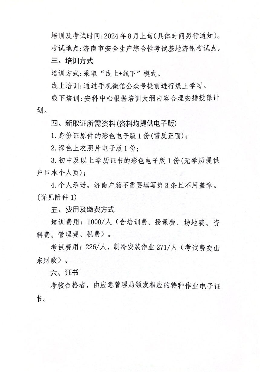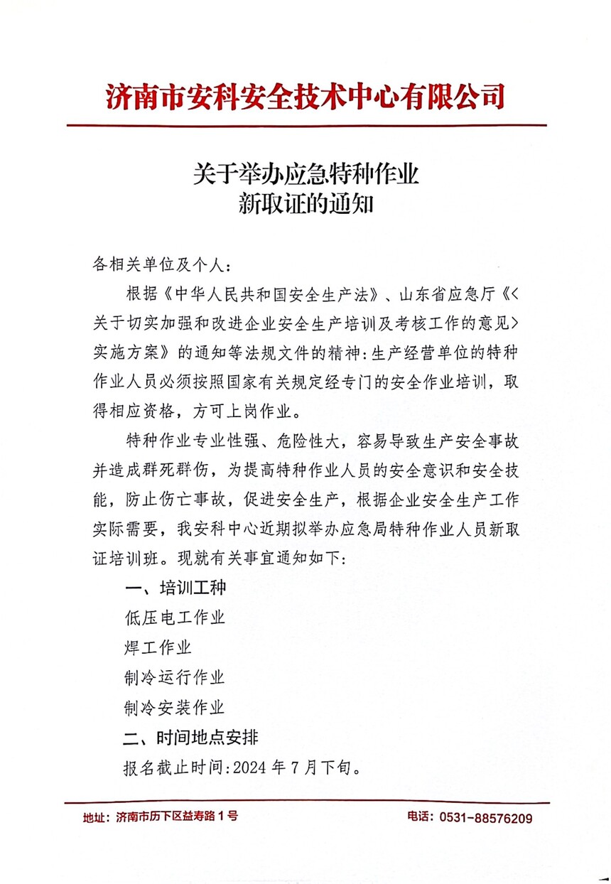 关于举办应急特种作业新取证的通知